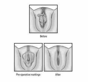 - cu indepartarea pielii in exces din afara zonei clitorisului